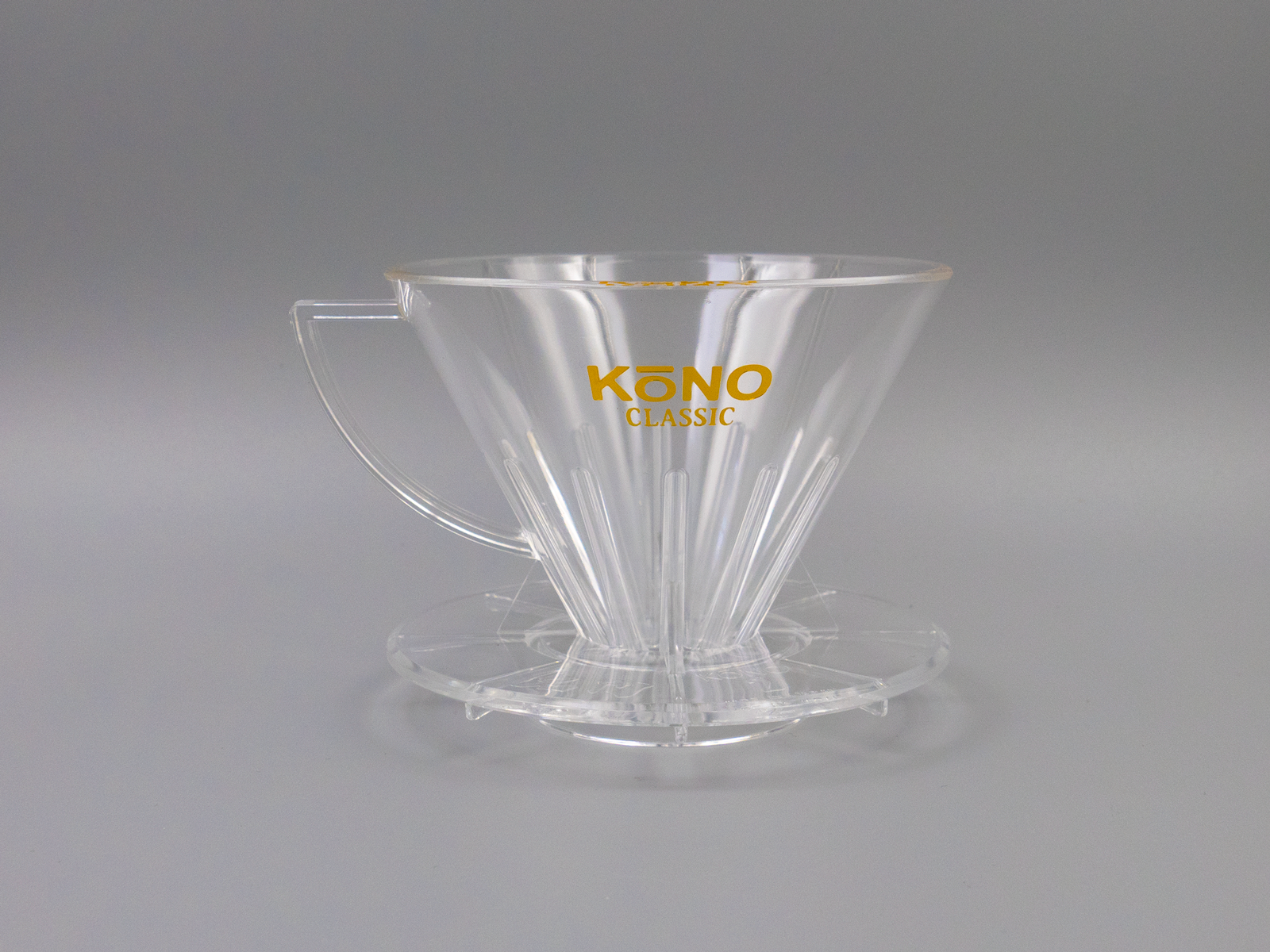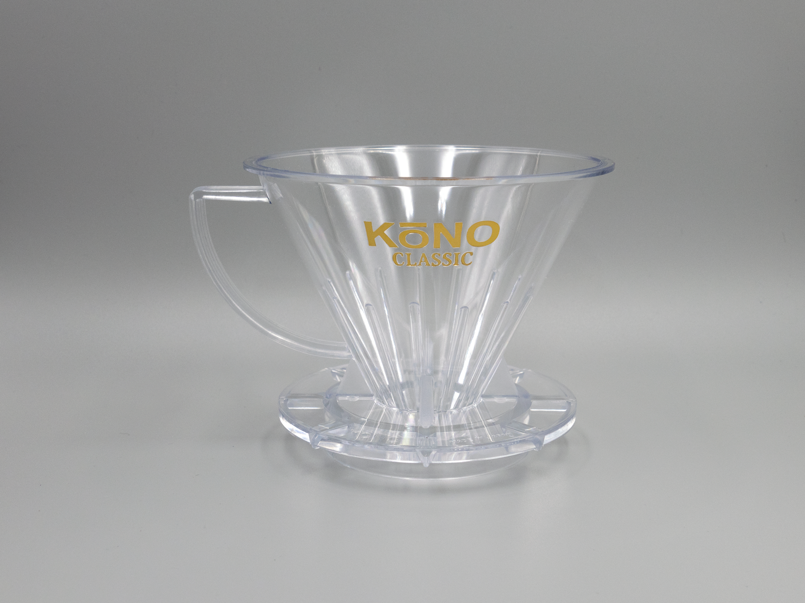 かなざわ抽出法では、1973年にプロ用として開発されたコーノ式のフィルターを使います。このフィルターの最大の特徴は、リブ(溝)が下部1/3にしかないこと。上部2/3はフィルターが壁面に密着し、抽出中に生じる泡(アク)——酸化成分や雑味を含む——が横から流れ落ちるのを物理的にブロックします。