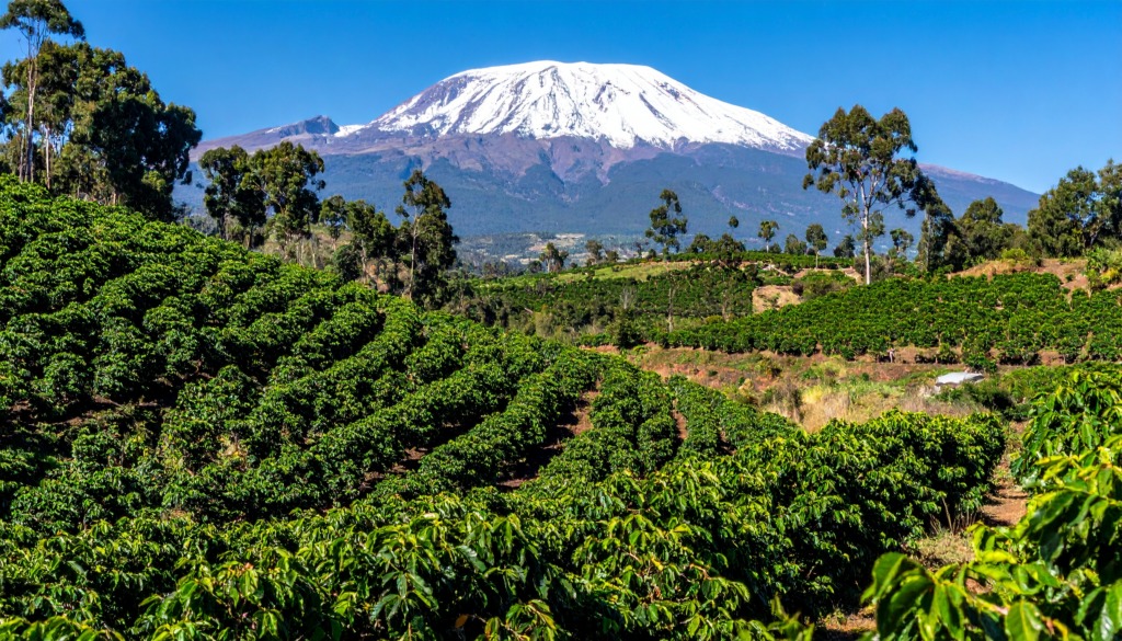 キリマンジャロ山(5,895メートル)はアフリカ最高峰で、その周辺の標高1,050〜2,500メートルの斜面が、コーヒー栽培の中心地となっています。
