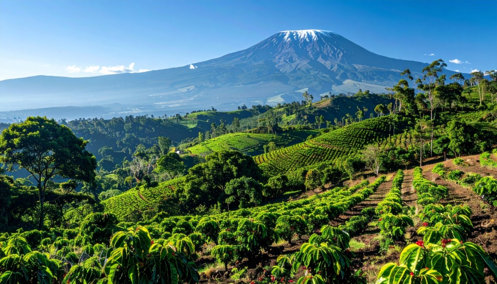 アフリカ最高峰キリマンジャロ山(5,895メートル)の南斜面と東斜面に位置し、標高1,050〜2,500メートルで栽培されます。