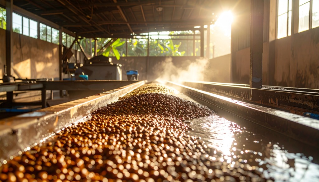エチオピアでは、小規模農家が個別に精製設備を持つことは稀です。そのため、「ウォッシングステーション」と呼ばれる共同精製所が重要な役割を果たしています。